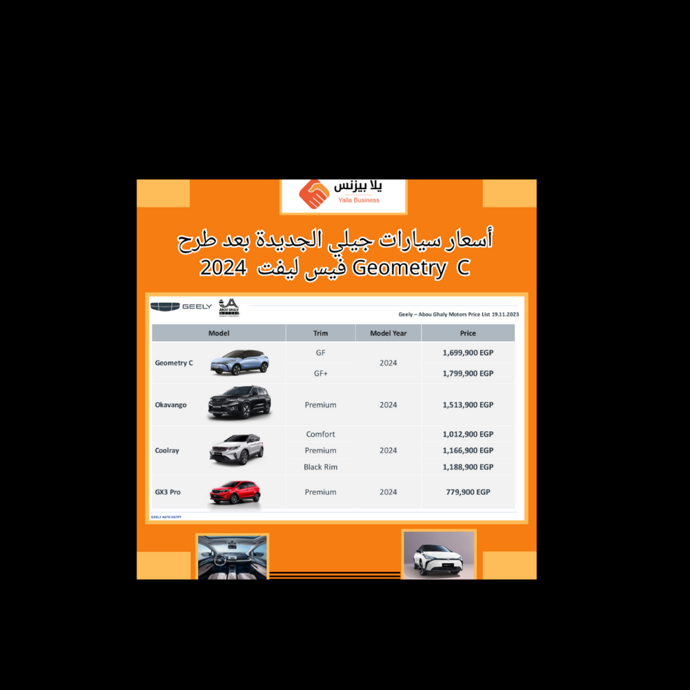 أسعار سيارات جيلي الجديدة بعد طرح Geometry C فيس ليفت 2024