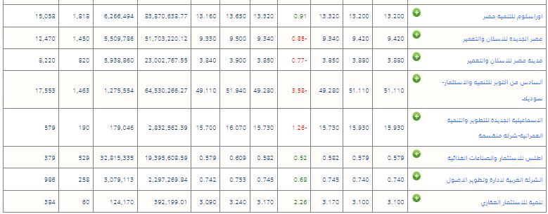 قائمة أسهم العقارات في البورصة المصرية اليوم