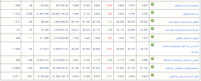 قائمة أسهم العقارات في البورصة المصرية اليوم