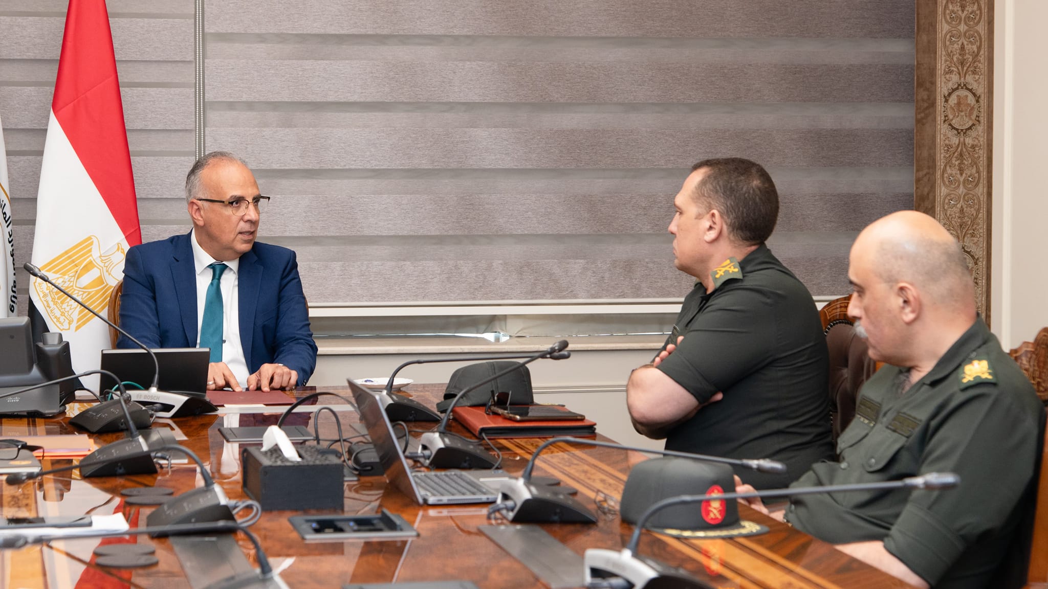 عقد الدكتور هانى سويلم وزير الموارد المائية والري إجتماعاً مع السيد اللواء محمد مصطفى رضوان مدير عام جهاز مشروعات أراضى القوات المسلحة ، والسيد اللواء إبراهيم برهام نائب مدير عام جهاز مشروعات أراضى القوات المسلحة ، وبحضور السيد المهندس محمد صالح رئيس مصلحة الرى ، والسيد المهندس حسام طاهر رئيس قطاع تطوير وحماية نهر النيل وفرعيه ، والسيد الدكتور أحمد مدحت رئيس القطاع المشرف على مكتب الوزير بخصوص التنسيق بين الوزارة والجهاز فى أعمال حماية جوانب نهر النيل ، وإزالة التعديات على مجرى نهر النيل وفرعيه .