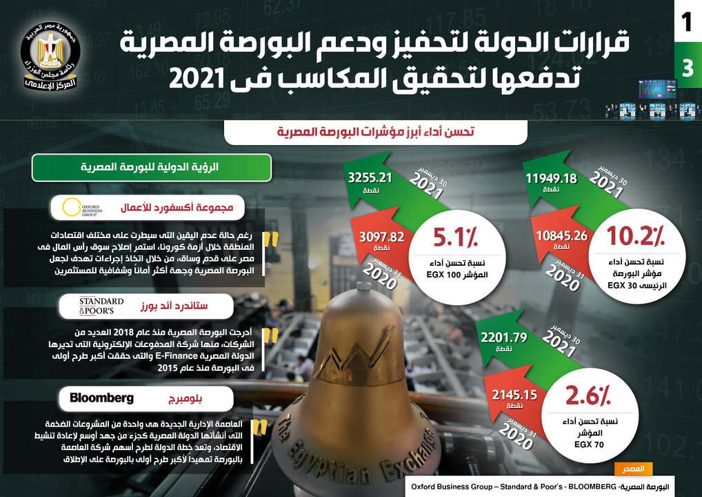 هذا وقد رصد التقرير النظرة الدولية لأداء البورصة المصرية، مشيراً إلى ما ذكرته مجموعة أكسفورد للأعمال، بشأن استمرار إصلاح سوق رأس المال في مصر على قدم وساق، رغم حالة عدم اليقين التي سيطرت على مختلف اقتصادات المنطقة خلال أزمة كورونا، ذلك من خلال إجراءات تهدف لجعل البورصة المصرية وجهة أكثر أماناً وشفافية للمستثمرين.