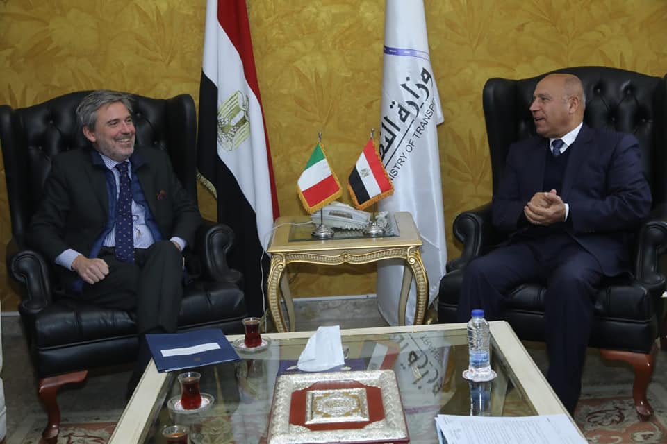 سفير إيطاليا بجمهورية مصر العربية. لبحث التعاون بين الجانبين في مجالات النقل المختلفة وخاصة في مجال النقل البحري وذلك بحضور رئيس قطاع النقل البحري، ورئيس هيئة ميناء دمياط ، وبحث أهمية تسيير خط رورو لنقل الحاصلات الزراعية سريعة التلف بين الموانىء المصرية (دمياط- الاسكندرية ) وميناء( تريستا بايطاليا .